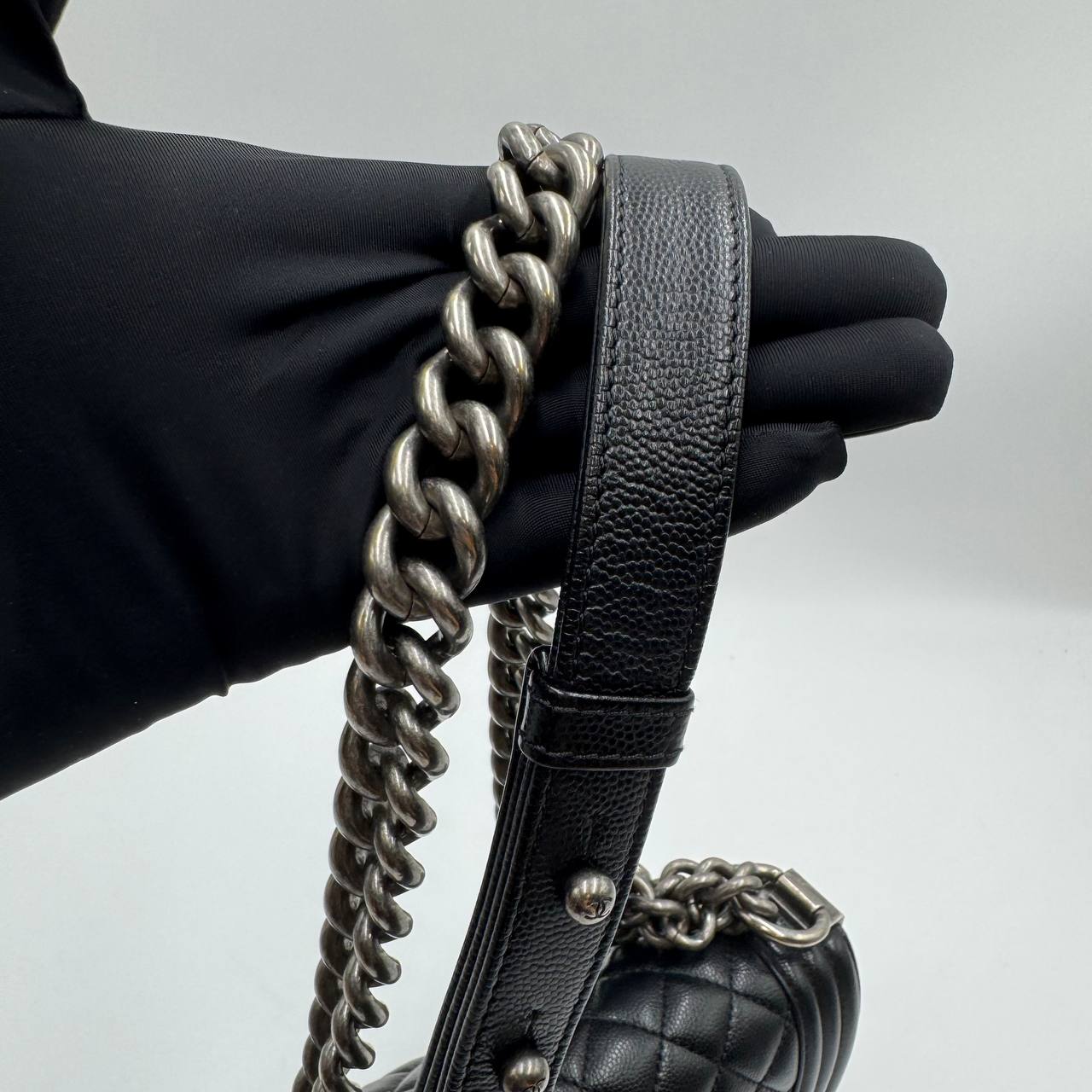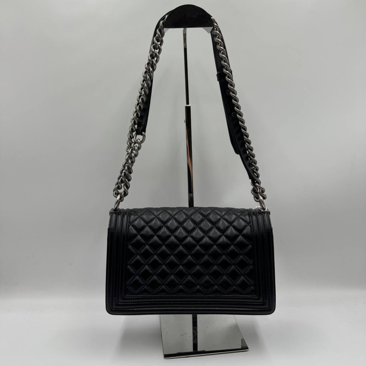 ✨ A highly sought-after Chanel Boy Bag, featuring the iconic structured silhouette with bold ruthenium chain hardware. Crafted in quilted calfskin leather, this piece offers a modern, edgy alternative to the classic flap.