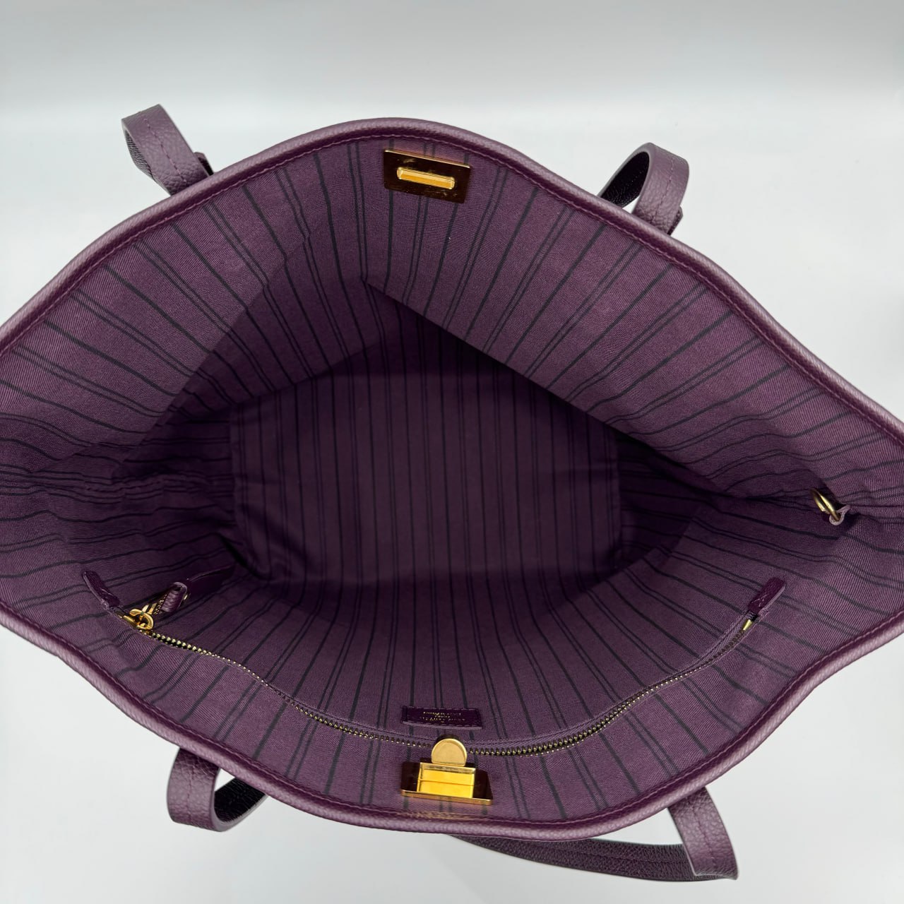 The Louis Vuitton GM Citadine Tote Bag is a roomy tote bag that can hold essentials in style. It has a classic tote style with a vintage-inspired striped interior and a turn lock closure. The bag is made from high-quality calfskin leather and features tall leather strap top handles with brass hardware.