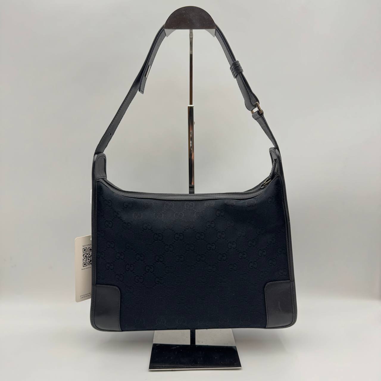 Crafted from premium black leather with polished details, this handbag is both durable and stylish. The structured design and roomy interior make it perfect for daily use, while the signature Gucci emblem adds a luxurious finishing touch.