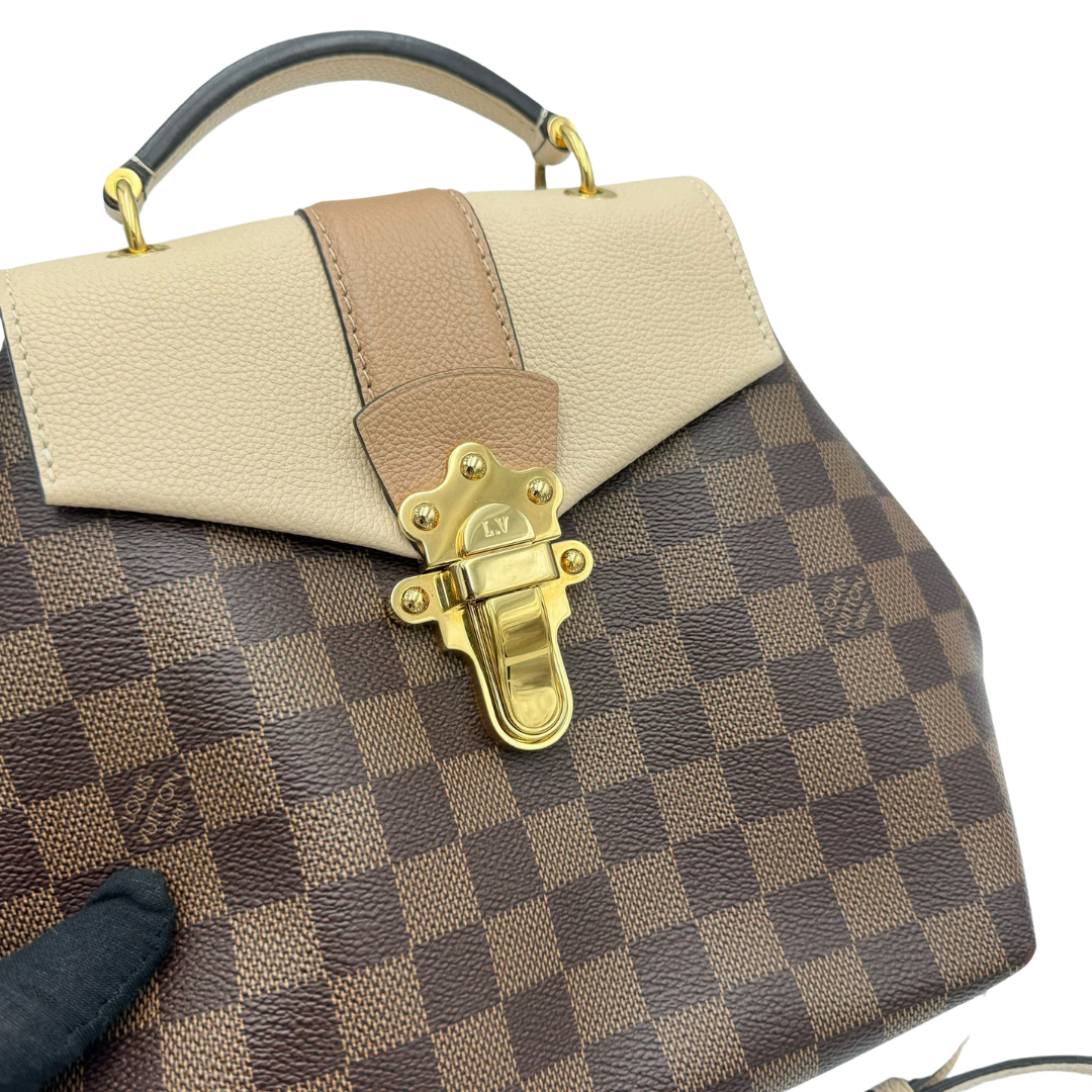 Introducing the Louis Vuitton Creme Damier Canvas Clapton Backpack Bag – a timeless blend of luxury and functionality. Crafted from premium Damier Ebene canvas, this sophisticated backpack features a chic creme color that effortlessly complements any outfit. The Clapton backpack is designed for the modern, on-the-go individual, offering ample space with multiple compartments to keep your essentials organized. Its adjustable leather straps ensure comfort, while the gold-tone hardware and signature LV logo exude elegance and prestige. Perfect for both casual outings and formal occasions, this versatile Louis Vuitton backpack is a must-have addition to your collection. Elevate your style with the Creme Damier Canvas Clapton Backpack Bag and experience the unparalleled craftsmanship of Louis Vuitton.