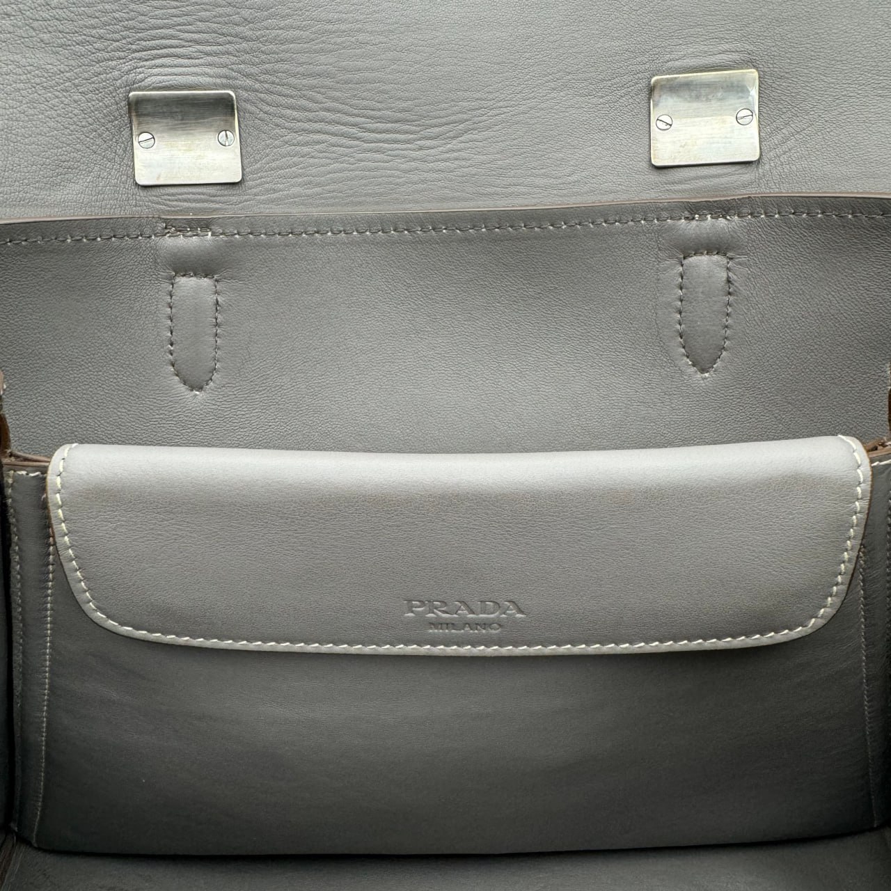 Double bag: Features a double handle, detachable shoulder strap, flap pocket, and nappa leather lining