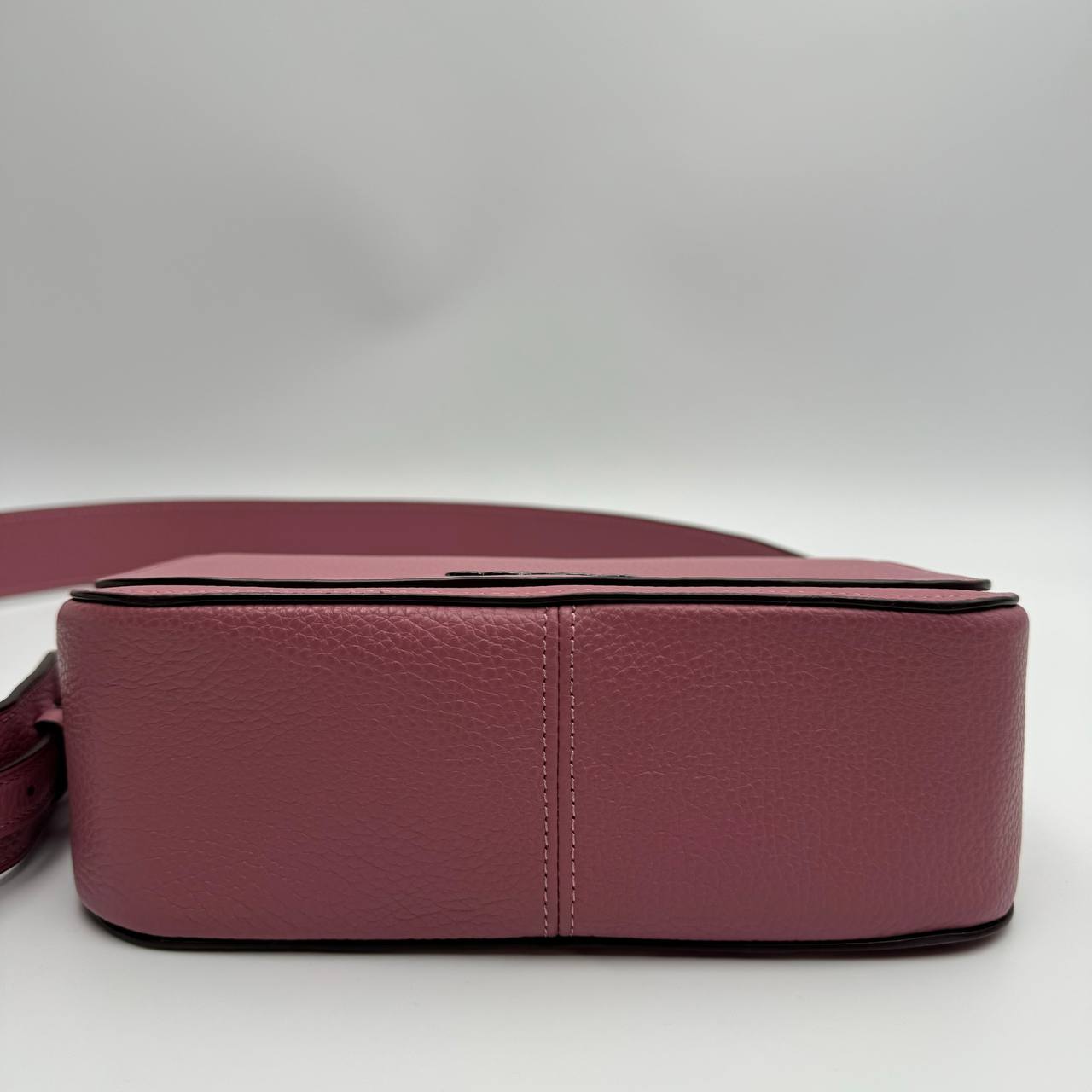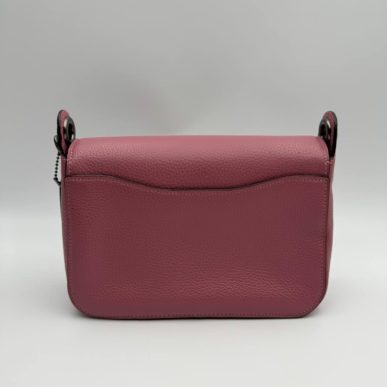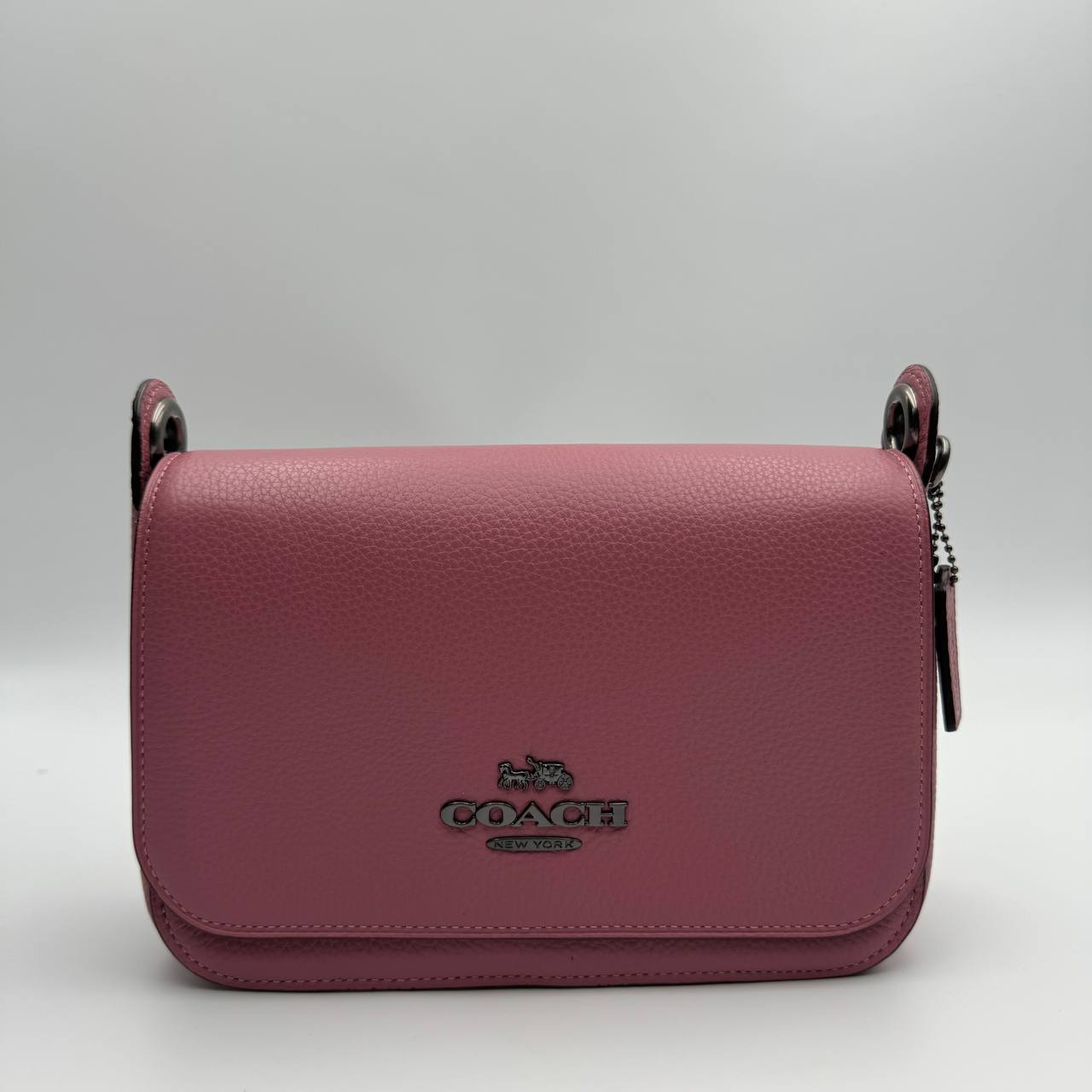 The Coach F76698 Leather Jess Small Messenger Chalk is a bag made of refined pebble leather with a multifunction pocket and a magnetic snap.