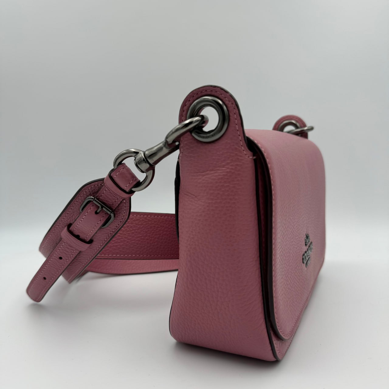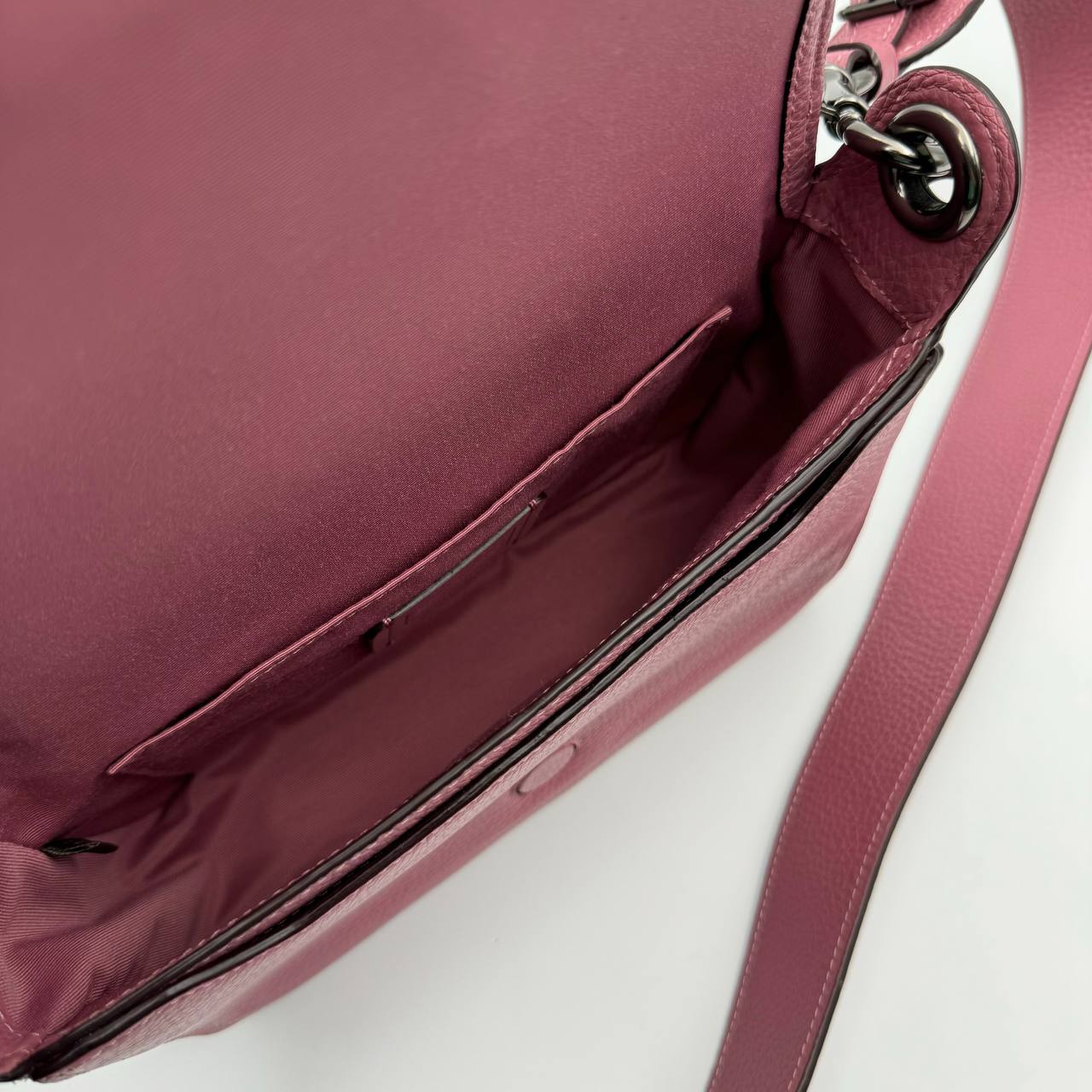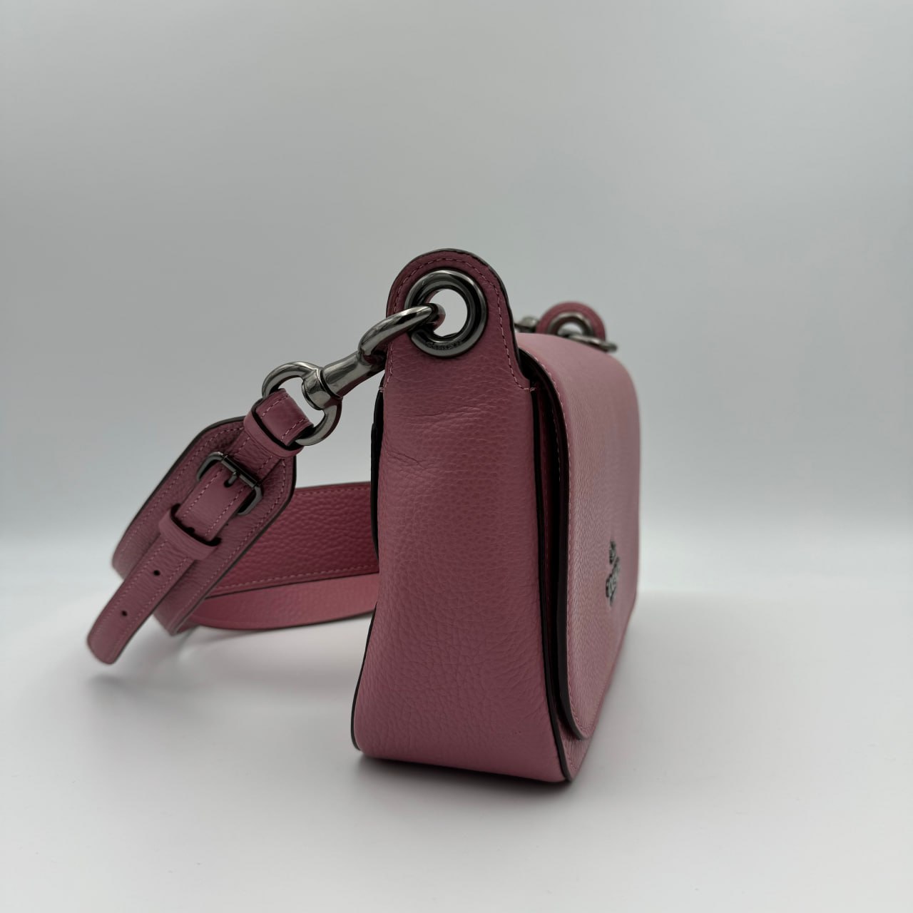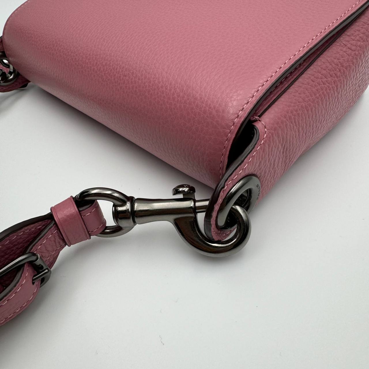 The Coach F76698 Leather Jess Small Messenger Chalk is a bag made of refined pebble leather with a multifunction pocket and a magnetic snap.