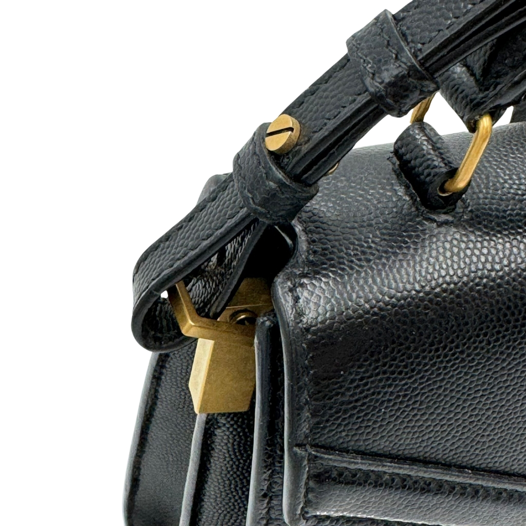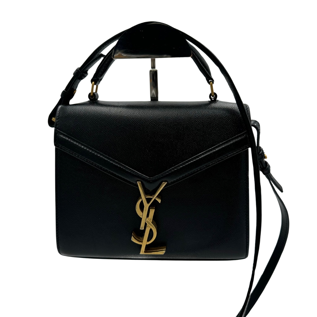 The Yves Saint Laurent Black Grained Leather Cassandra Top Handle Bag is the perfect accessory for any fashion-forward woman on the go. Made with high-quality grained leather, this bag is both durable and stylish.